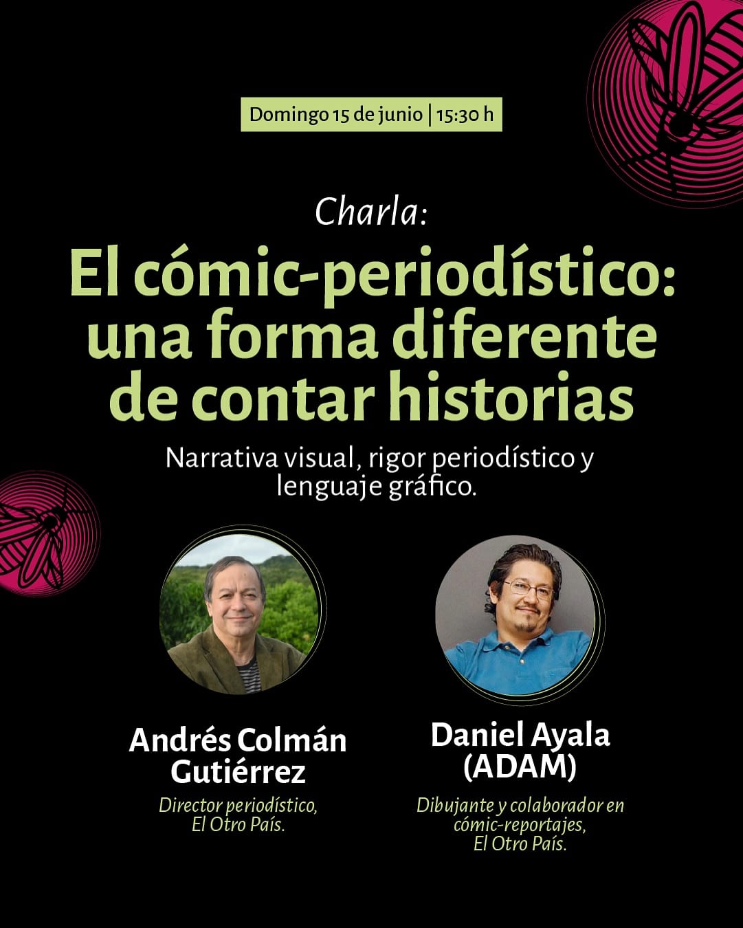 En horas de la tarde, a las 15.40, el escritor, periodista y guionista Andrés Colmán Gutiérrez, director periodístico de El Otro País, junto al dibujante Daniel Ayala Medina (ADAM), ofrecerán un taller acerca de cómo realizar un cómic-periodístico.